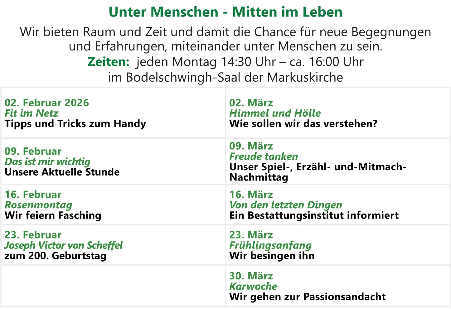 Regelmäßige Veranstaltungen